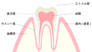 酸によって歯の表面のエナメル質が溶けると、次の層である象牙質が出てきます。象牙質はエナメル質より歯が柔らかくしみやすい場所になります。そこに、お口のかむ力も加わって、どんどんすり減っていき、しみるようになってきたりするのです。